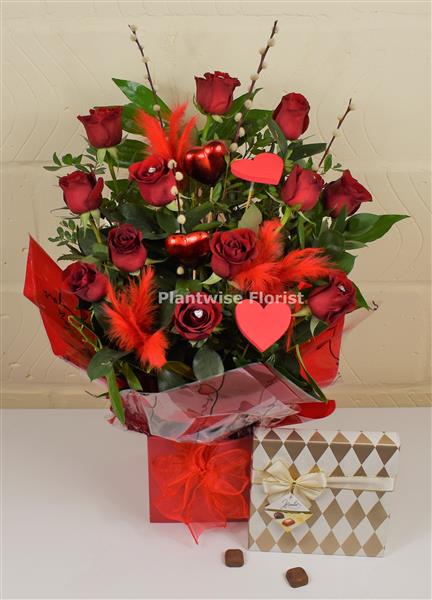 Make Valentine's Day Extra Special You can make your Valentines Bouquet of flowers Extra Special by Adding Delicious Chocolates, Salted Caramel Truffles, Fudge, Prosecco , Wine, Champagne or Spirits, a I Love You Balloon, a Cute Teddy, a With Love Greetings Card or a Valentine Gift Hamper. All our Valentine’s Day Flowers are hand made with love & care by our team of experienced trained florists at Plantwise Florist Shop in Canvey Island and they are delivered by our own delivery drivers at Plantwise.