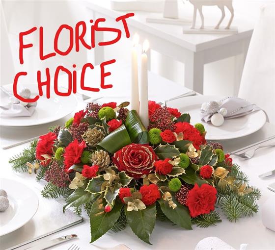 - Christmas - Florist Choice Christmas Table Arrangement with Candle