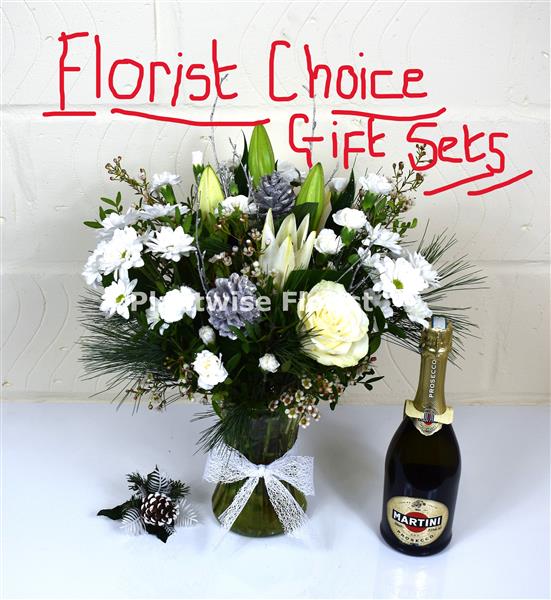 Let our expert florists arrange for you a wonderful selection of Seasonal Christmas flowers arranged into a glass vase delivered with a bottle of our finest Prosecco. It will make a Extra Special Christmas present to buy this year.