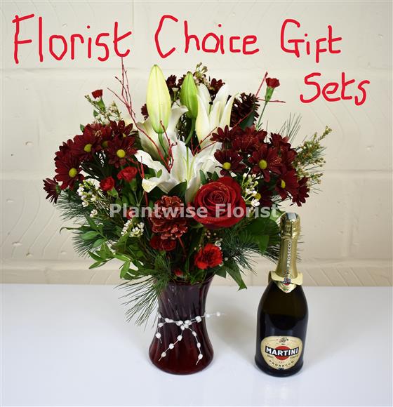 - Christmas Florist Choice Vase of Flowers With Prosecco Gift Set
