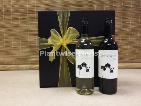 Plantwise Florist Wine Hampers are a great perfect to buy to say thank you, happy christmas or happy birthday and can be ordered for a man or lady. The Hamper consists of two bottles of our finest wine a White Wine and a Red Wine which Plantwise Florists have beautifully presented in a stylish gift box