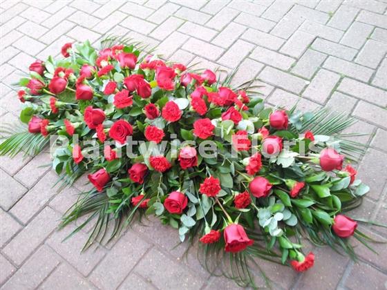 A Red and White Mixed Flower Coffin Top Spray CodeCA45