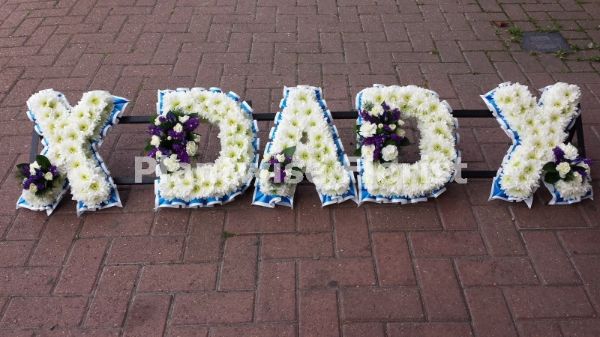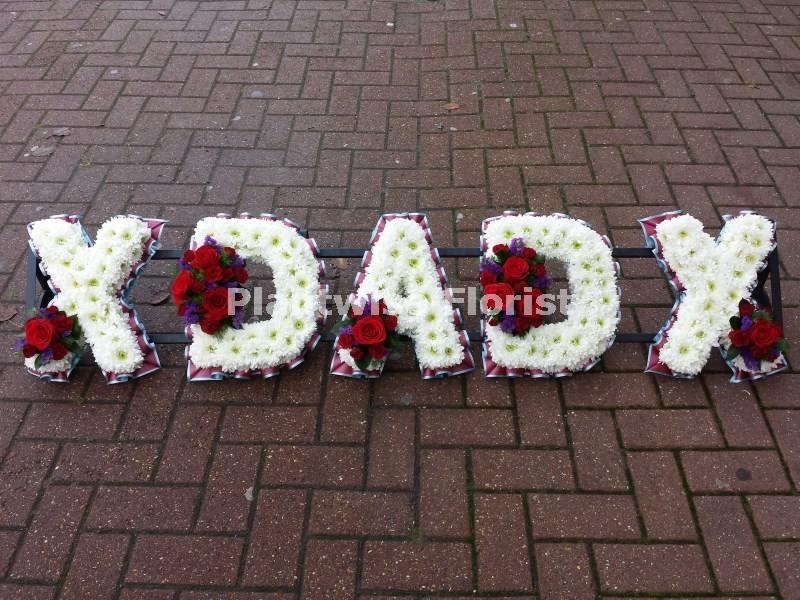 Our Kiss DAD Kiss Floral Letters Tribute Wreath is very special funeral flowers to buy for your Dads funeral.