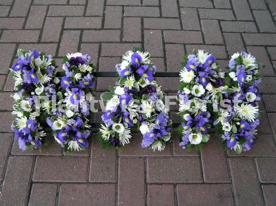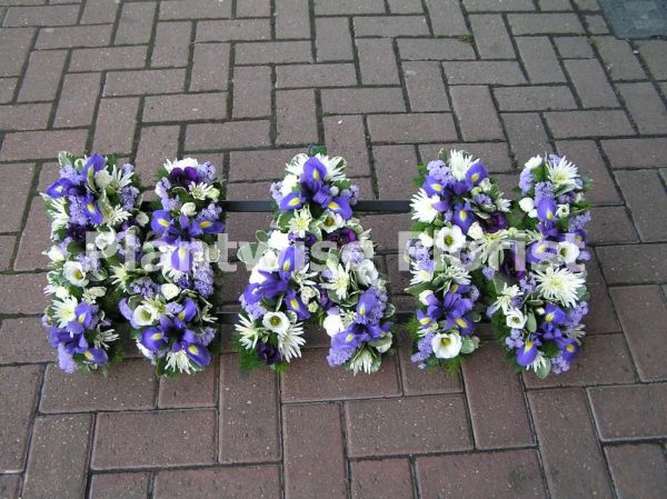 Flowers included are Iris, Spray Carnations, Lisianthus, Deliane Crysanths, Statice and choice foliage's.