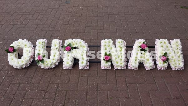 3 OUR NAN Letters In Flowers For Funeral with Single Flower 1