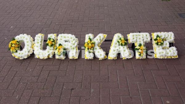 Gothic Style Floral letters Made In Flowers For A Funeral