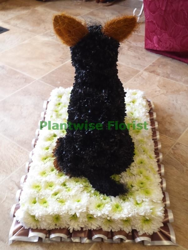 Our talented Canvey Island Florists have designed a funeral wreath in the shape of a Yorkshire Terrier Dog all made in flowers.