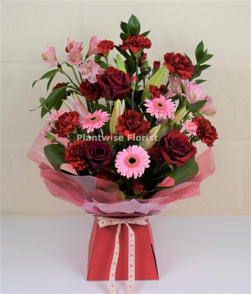Order your romantic valentines day flower delivery for Valentine's Day 14th February in Canvey Island SS8, Benfleet SS7, Thundersley SS7, Hadleigh SS7, Basildon/Pitsea SS13, South Benfleet SS7 or Free click & collect in-store at Plantwise Florist in Canvey Island.