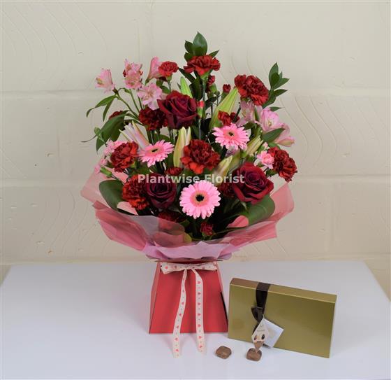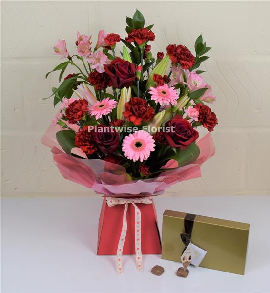 Make Valentine's Day Extra Special You can make your Valentines Bouquet of flowers Extra Special by Adding Delicious Chocolates, Salted Caramel Truffles, Fudge, Prosecco , Wine, Champagne or Spirits, a I Love You Balloon, a Cute Teddy, a With Love Greetings Card or a Valentine Gift Hamper. All our Valentine’s Day Flowers are hand made with love & care by our team of experienced trained florists at Plantwise Florist Shop in Canvey Island and they are delivered by our own delivery drivers at Plantwise.