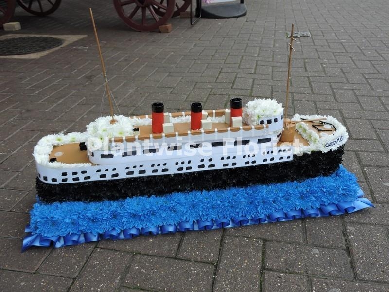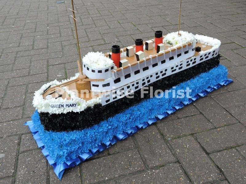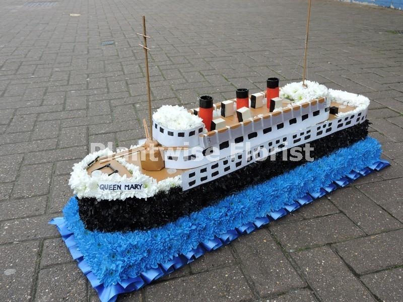 Our trained Florists have the skill and expertise to design and make in flowers this very detailed RMS Queen Mary Ship funeral flowers wreath.