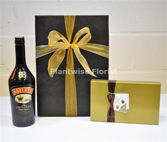 Our Hamper consists of a bottle of 70cl Baileys with a box of delicious Chocolates beautifully presented in a stylish gift box finished with ribbon and makes a great Birthday, Anniversary, Christmas or Thank you present to buy for a lady or gentleman.