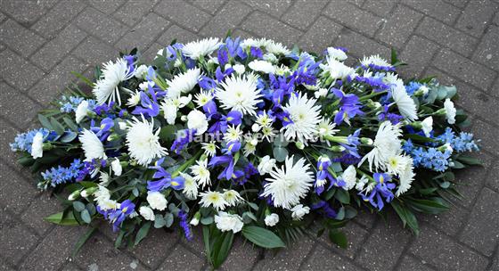 Blue and White Mixed Flower Coffin Spray - CA40 4