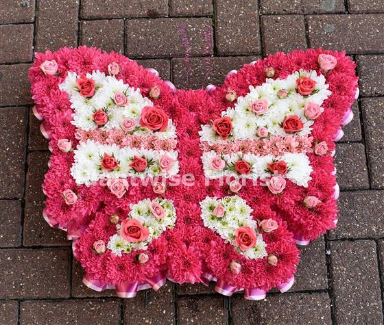 A beautiful Butterfly Floral Tribute funeral Wreath all created in flowers for you.