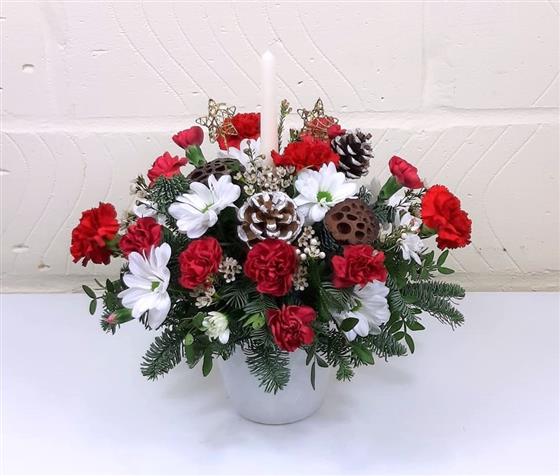 Please note These Christmas Flowers are hand made by Plantwise Florist in Canvey Island so can be ordered for Christmas flower delivery in SS8 Canvey Island, SS7 Benfleet, South Benfleet, Thundersley, New Thundersley, Daws Heath, Hadleigh, SS13 Pitsea or Bowers Gifford in Essex or can be collected in store free of charge on any day you wish before Christmas. All deliveries are done by our own drivers at Plantwise Florist . It is essential you include a phone number for the delivery address we are delivering to in case someone does not answer the door. We DO NOT Call before we get to the address we only call if we have no answer at the delivery address.