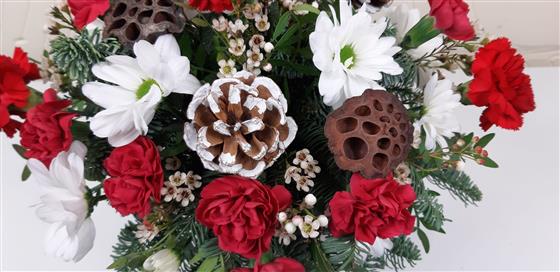 Please note These Christmas Flowers are hand made by Plantwise Florist in Canvey Island so can be ordered for Christmas flower delivery in SS8 Canvey Island, SS7 Benfleet, South Benfleet, Thundersley, New Thundersley, Daws Heath, Hadleigh, SS13 Pitsea or Bowers Gifford in Essex or can be collected in store free of charge on any day you wish before Christmas.