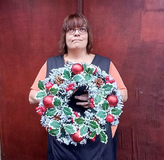 Christmas Silk Pine Wreath with Holly, Snow & Apples 4