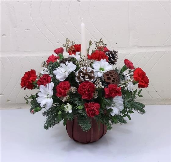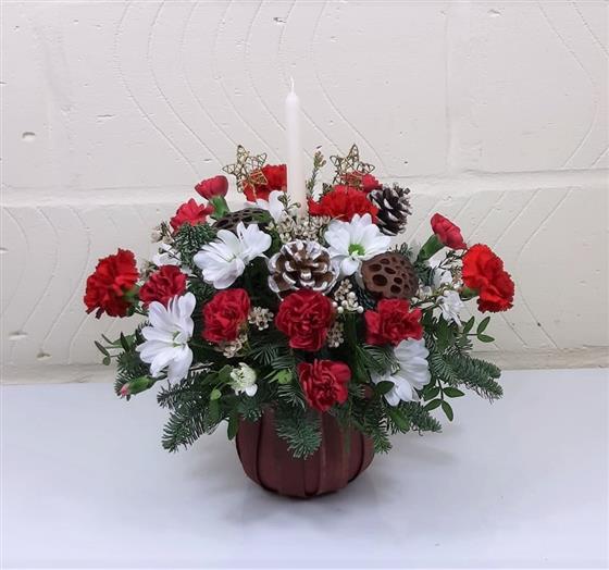 - Christmas - Florist Choice Christmas Table Arrangement with Candle