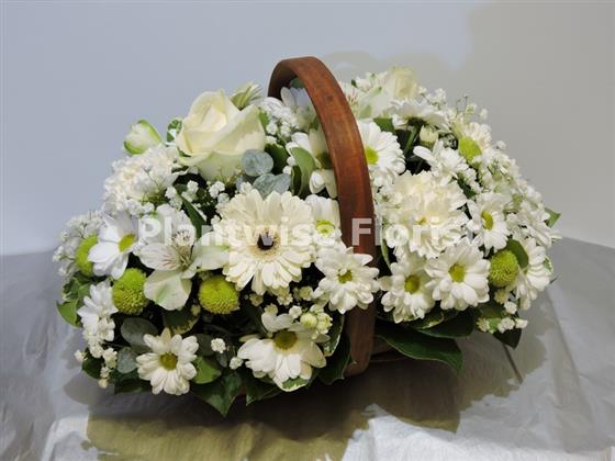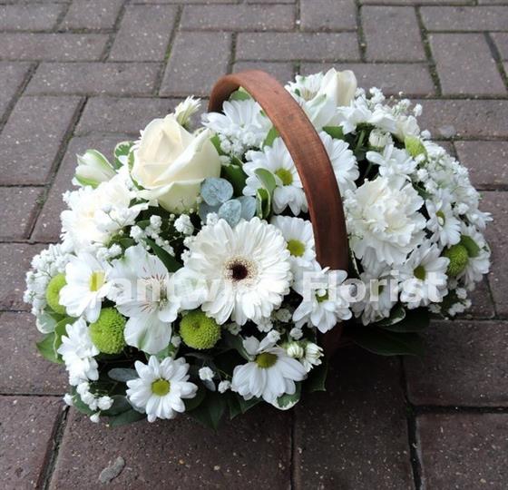 Our basket of white flowers can be delivered to funerals leaving from SS8 Canvey Island, SS7 Benfleet, Thundersley, Hadleigh, SS13 Pitsea Basildon or can be collected in-store. Some other delivery areas also available call 01268 514557 for details.