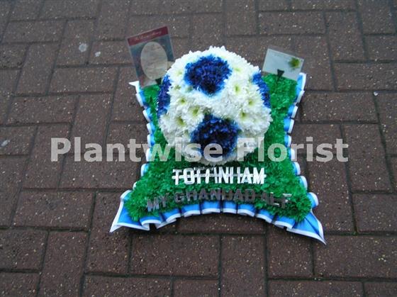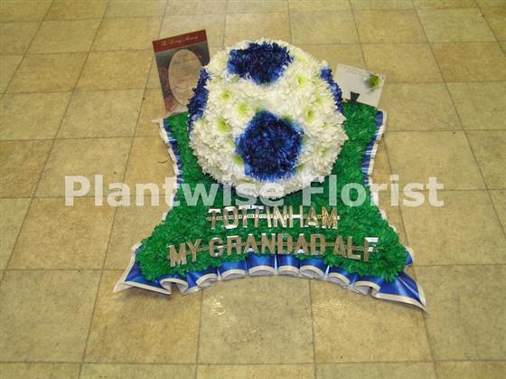 This football is in blue and white flowers but can be ordered in any team colours eg West Ham, Millwall, Arsenal, Tottenham, Canvey FC, Liverpool etc. See other footballs on our website.