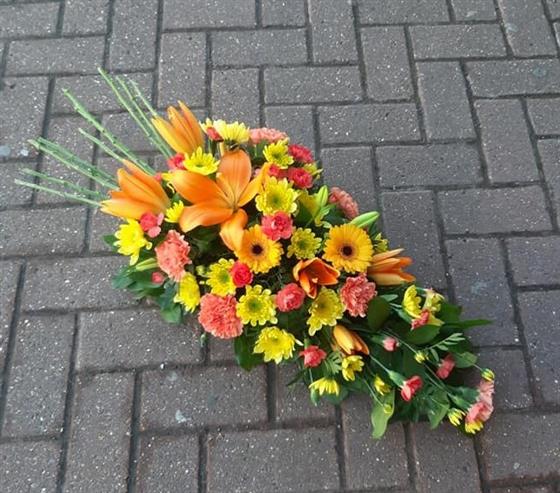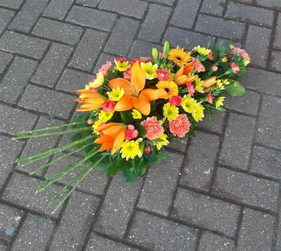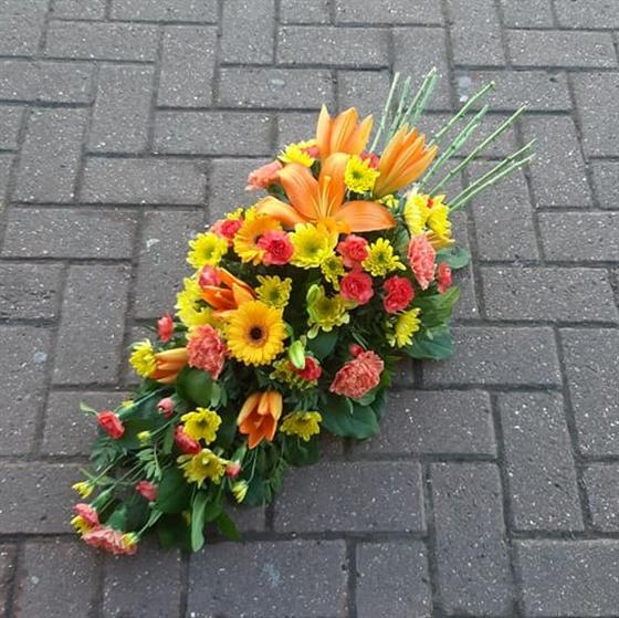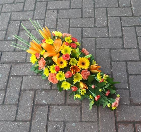 Germini and Lily Funeral Oasis Spray in Orange and Yellow 2