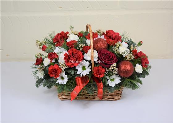 We make Baskets of Fresh Christmas flowers to be placed at the graveside or crematorium at Christmas. We have used a wonderful selection of long lasting Christmas fresh flowers in traditional Reds and White Flowers with Christmas greenery that will look really special laid at the graveside at Christmas time and can be delivered in Canvey Island, Benfleet, Thundersley, Hadleigh or Pitsea in Essex or Click & Collect in store.