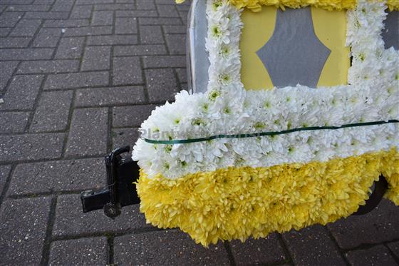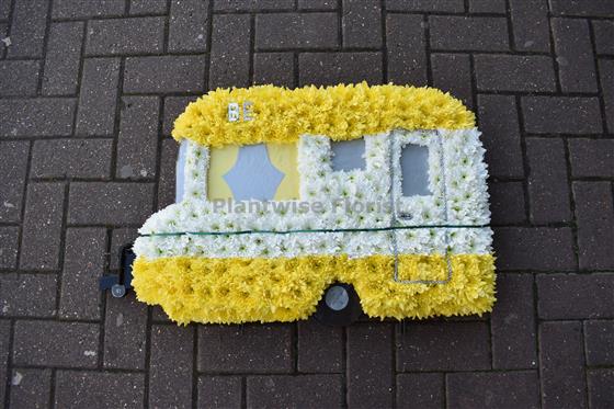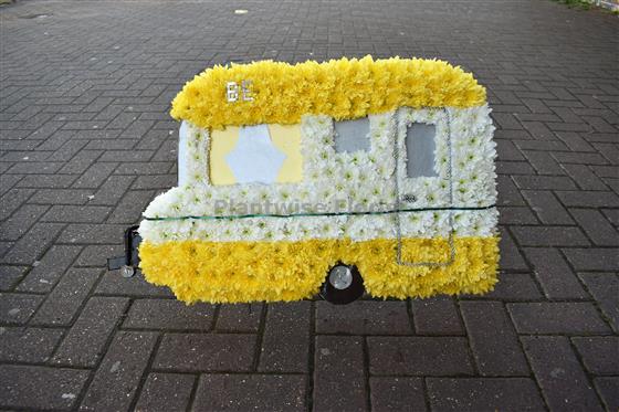 Plantwise florist have made this caravan in flowers suitable to be sent to a funeral.