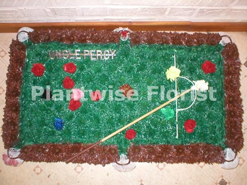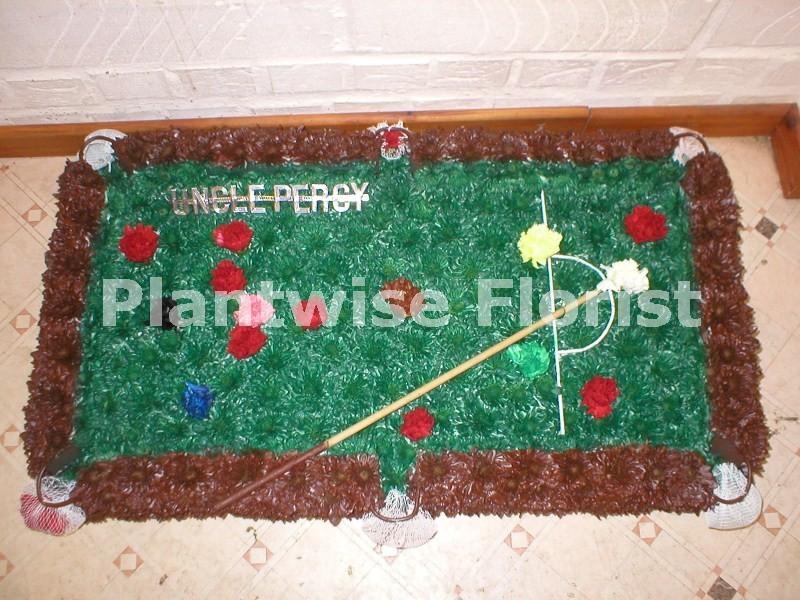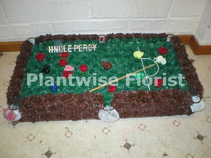 Our Florists have made this very special Snooker Table wreath in flowers. The snooker table is a large size with so much attention to detail it almost looks real, we have made all the snooker balls, a snooker cue and the snooker table even has the net pockets, creating a very unusual but special funeral tribute to buy anyone that loved to play snooker.