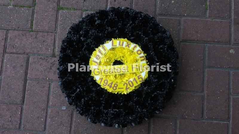 This Record funeral flower wreath can be delivered to SS8 Canvey Island, SS7 Benfleet, Hadleigh, Thundersley, SS13 Pitsea Basildon or can be collected in-store at Plantwise Florist. Some other delivery areas also available call 01268 514557 for details.