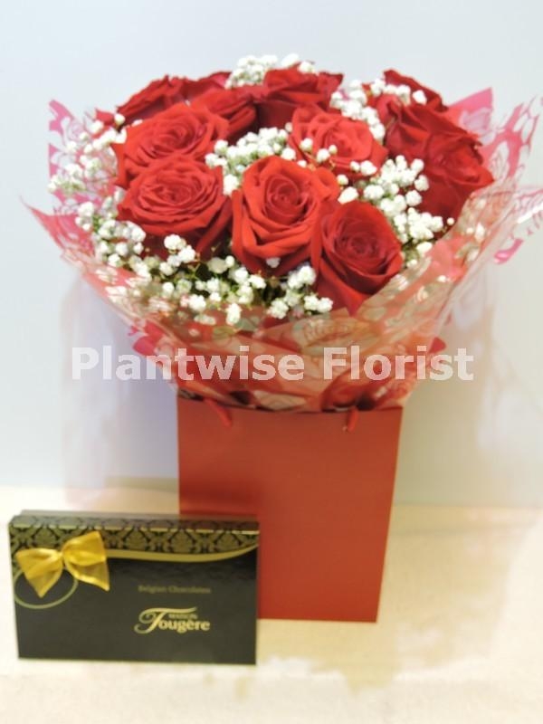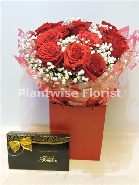 Plantwise Florists Red Roses and Chocolates Gift Set is a romantic present to buy for your Wife or Girlfriend on your anniversary or to say I love you.