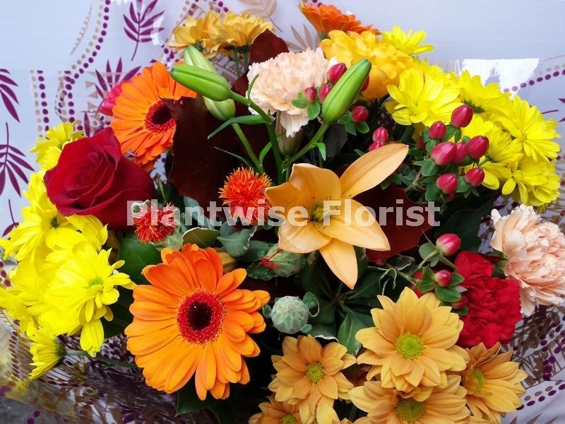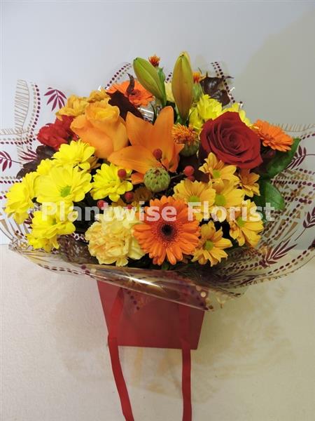 Order our autumn breeze Hand-tied Bouquet for flowers delivered same day or next day or morning am delivery in Canvey Island, Benfleet, Pitsea, Thundersley, Hadleigh, South Benfleet, North Benfleet in Essex or can be collected in-store for Free from Plantwise flower shops in Canvey Island, Essex.